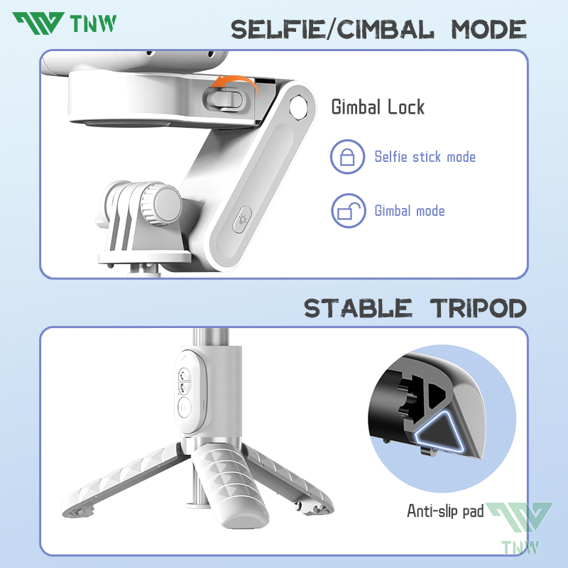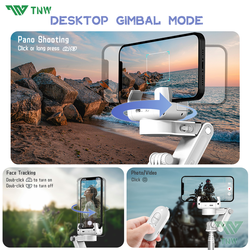 1. Has 3 modes (3 in 1) Desktop Gimbal Mode (Can rotate 360 degrees from left to right) Gimbal Stabilizer mode and Selfie Stick mode