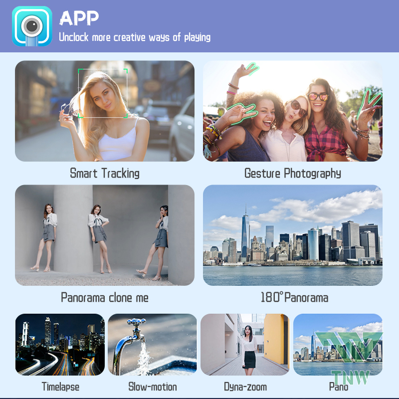 3. Smart tracking, shooting templates and more functions supported inside the app;